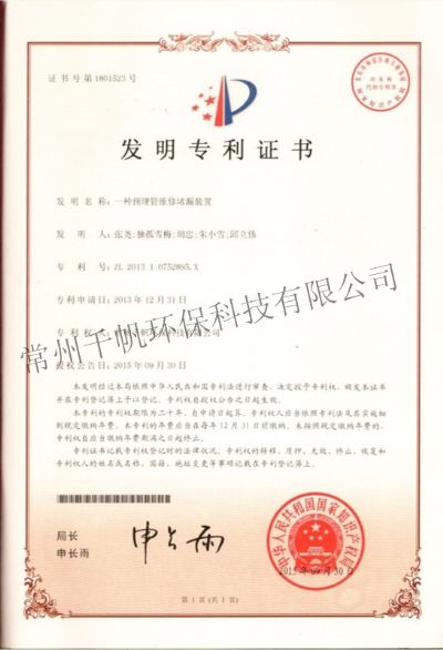 發明專利證書 一種自動上浮微孔曝氣裝置
